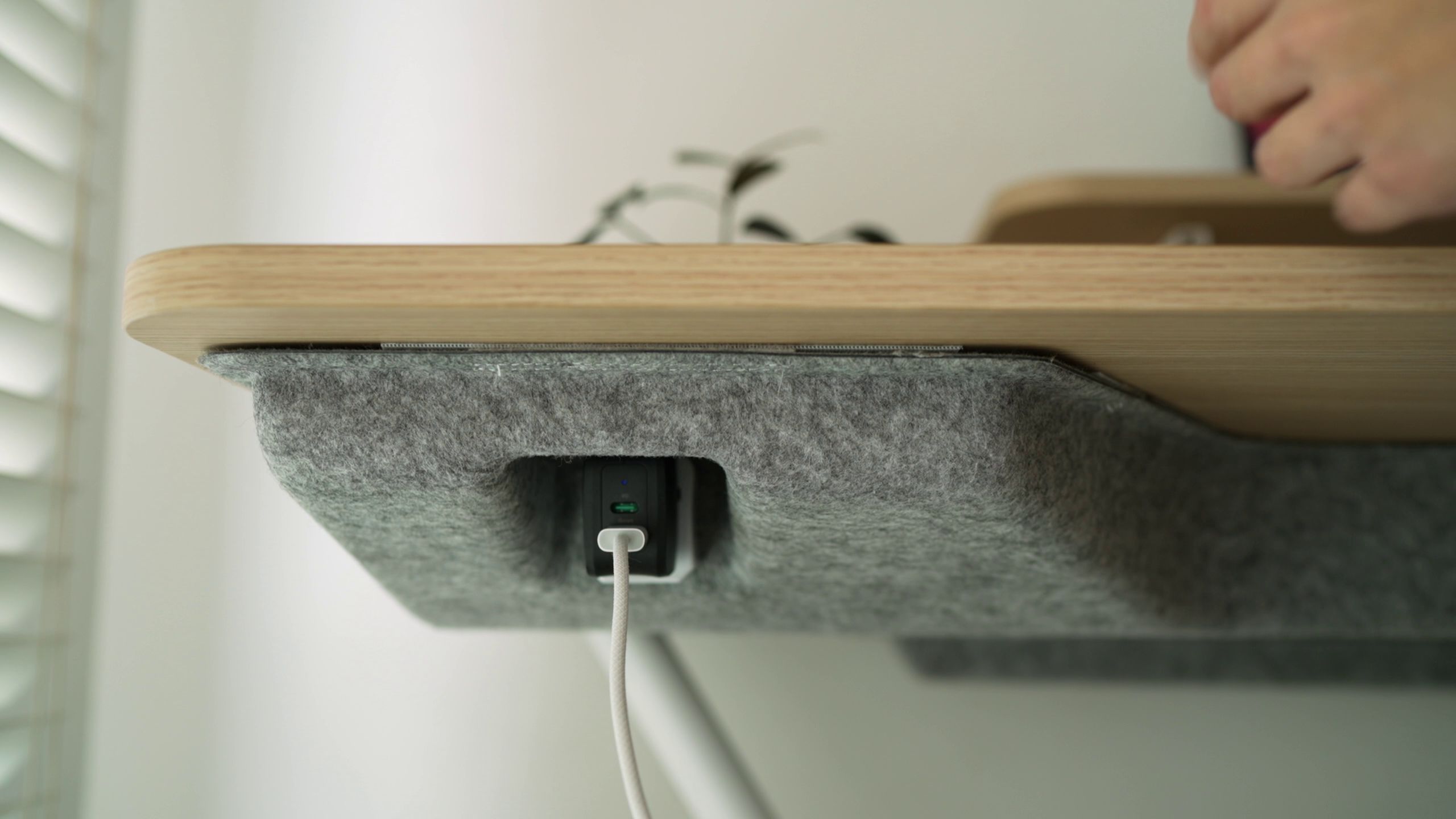 The Flow Desk, on the other hand, has less hard edges, and the wooden tabletop paired with grey felt covers give it more of a warm and considered vibe. The grey felt covers hide cables, along with housing a built-in tray at the back to manage power strips and additional cable (although it’s not the most spacious and could be a bit of a tight fit if you have bulkier power bricks).